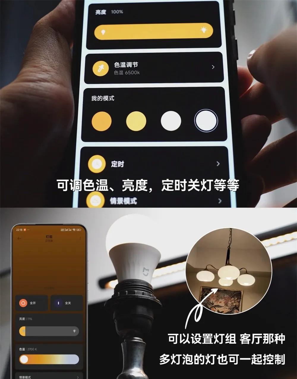 燈泡倒是沒想到能這么智能。擰上去連個APP就完事了,手機能控制開關,還能調亮度和色溫。晚上起夜調暗點,早上起床調亮,比普通燈泡實用多了。三十一只裝的也沒貴多少,換了三個房間都沒花太多錢。