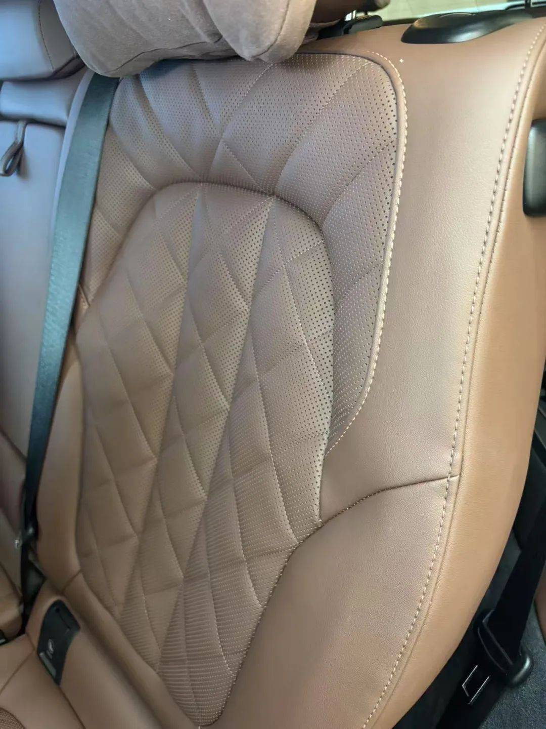 Merino真皮的用量也十分良心,如果選配到全Merino真皮,車內肉眼可見的皮質包裹部分,比如儀表臺、門板、中央扶手等區域全部用同一張牛皮包裹,確保色彩與紋理的絕對一致性,如果把這些皮料拆下來平鋪到地面上將達到35-40㎡,這種奢侈做法在整個汽車行業都屬罕見。