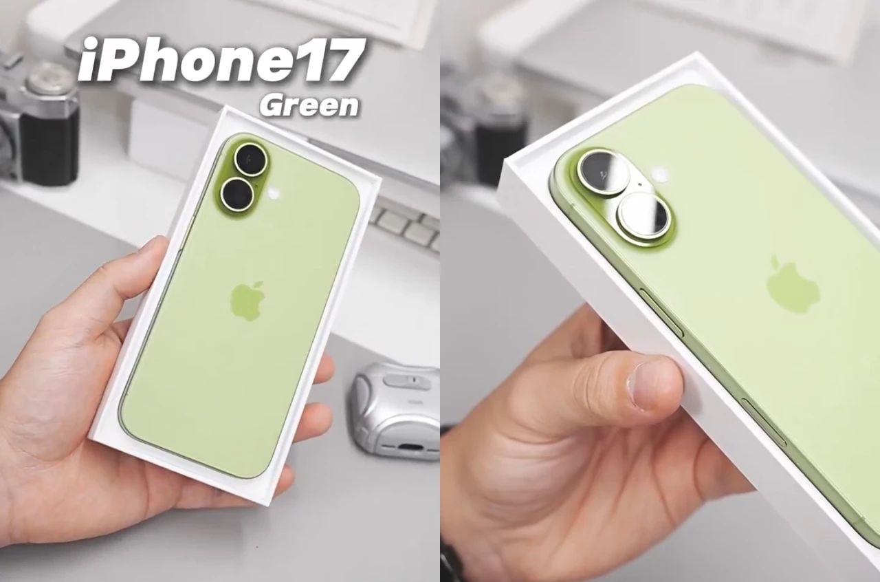 從圖片來看,綠色版 iPhone 17 還蠻小清新的,呈現出一種清新淡雅的風格。不過相比 iPhone 15 的綠色,這個飽和度要稍微高一些。