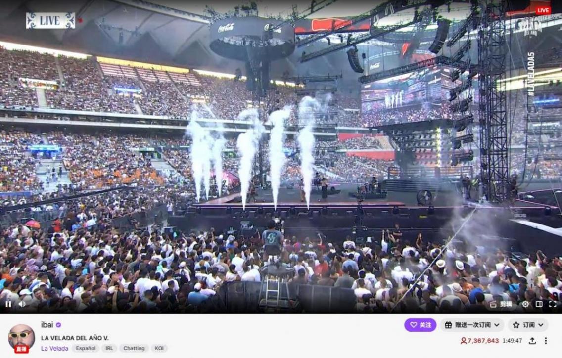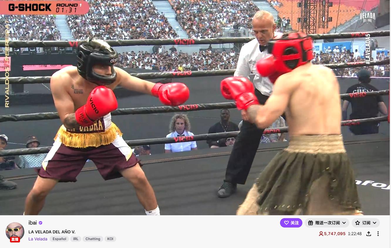 西班牙頂流網紅主播Ibai Llanos主辦的第五屆年度跨界名人拳擊娛樂盛典——La Velada del Año V,其Twitch直播的同時在線觀看人數,峰值直接突破了700萬大關,再次刷新了由他自己保持的直播歷史記錄!