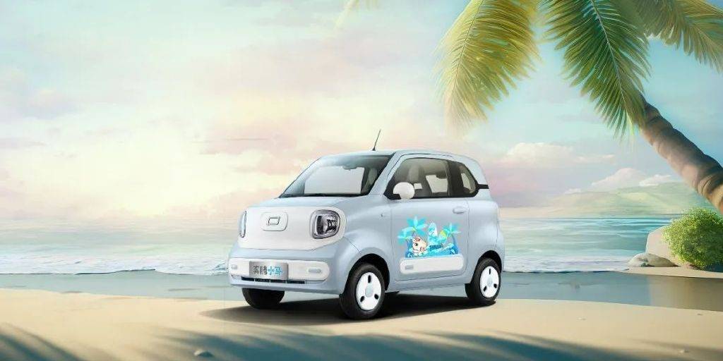 外觀方面,作為一款定位年輕、個性化的微型電動車,其外觀設計極具辨識度。前臉,最具特色的是其圓形大燈組,搭配下方大面積留白的設計,營造出一種簡約呆萌的視覺效果。側面,采用懸浮式車頂設計,即車頂(A柱/C柱以上部分)與車身主體采用不同顏色,形成鮮明的撞色效果,增加時尚感和活力。車尾,呼應前臉,尾燈也多為方正或圓形設計,造型簡潔可愛。此外,還提供了超過100種個性化改裝方案,滿足不同消費者的多樣需求。其長寬高分別為3000/1510/1630 mm,軸距為1953mm,大于宏光MINIEV(2920/1493/1621 mm,軸距為1940mm),后排頭部和腿部空間更優。