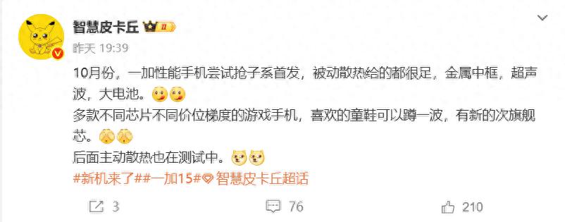 機哥我剛刷到智慧皮卡丘和數碼閑聊站的最新爆料,一加這次是真拼了,10月份將會提前將一加15和一加Ace6兩款手機,一同發布。