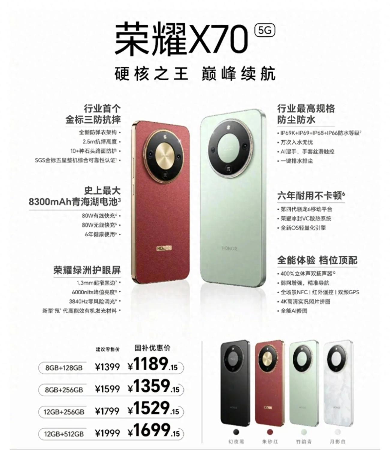 配備了8300mAh超大電池,頂配版80W無線閃充,并且十面抗摔,高規(guī)格防塵防水,很適合送長輩與戶處的小伙伴們。