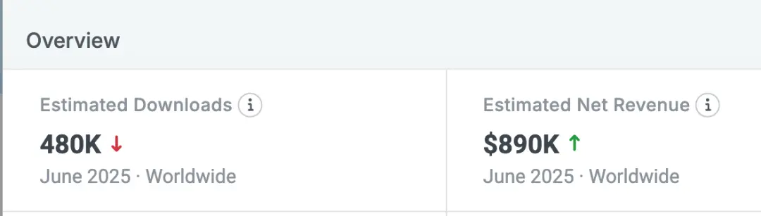 世超查了最新數(shù)據(jù),這個(gè) App 在今年 6 月依然保持著 89 萬(wàn)美元的月收入,穩(wěn)得一批。