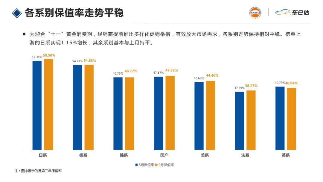 二、9月各系別汽車保值率分析