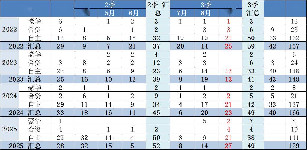 今年的自主品牌新車數量較去年少,但新能源幾乎是自主包攬的局面。合資車企的市場新品推出改善,豪華車新品值得期待。