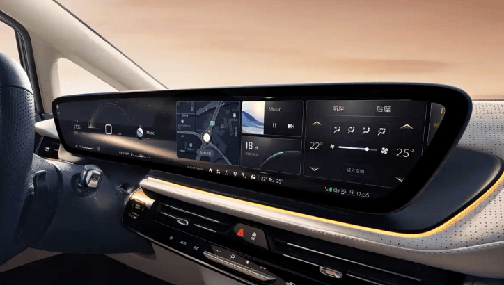 內飾以場景化奢享為核心,二排頭枕繡有LPGA定制標識,12層結構的云感禮賓座椅配備加熱、通風、按摩及360°旋轉功能。30英寸一體弧面6K屏與15.6英寸后艙智慧屏形成聯動,配合星空穹頂與Bose環繞音響,營造頭等艙般體驗。