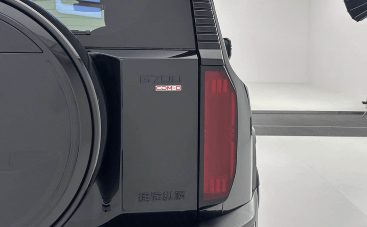 車尾采用了側開式電動吸合尾門是很大亮點,搭配碳纖維外掛備胎(內置無人機充電模塊),減輕重量同時提升了功能性。新車采用了非承載式車身,提供了2.5噸的承重拖車鉤,合法拖掛資質可滿足戶外露營需求。