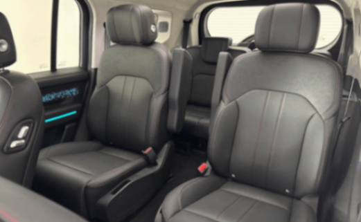 座椅提供了 傳統5 座和 2+2+2式6座兩種形式可選,6 座版第二排的兩個獨立座椅配備Nappa 真皮材質,支持8點按摩、通風 / 加熱功能,右側座椅可聯動副駕一鍵放平形成 “躺平模式”。