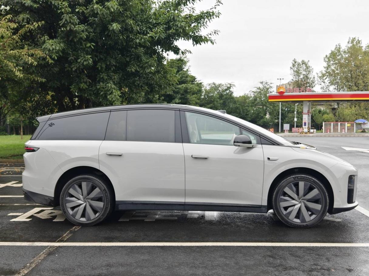 2、造型方面,理想 i8的產品定義是中大型SUV,實車的體量感也確實很大,車身長度5085mm、軸距3050mm,都是非常有優勢的。盡管很多人說理想i8看起來很有 MPV 的感覺,但實際上它把空懸升起來之后還是更有SUV的姿態。包括車身高度已經達到了 1.74 米,而且整個D柱更溜背,這不是傳統 MPV 的風格,所以將它定義為 SUV 也是沒有問題的。尤其是將它和其他五米級別的 MPV 放在一起的時候,還是會覺得理想i8就是一個中大型 SUV 的設計。