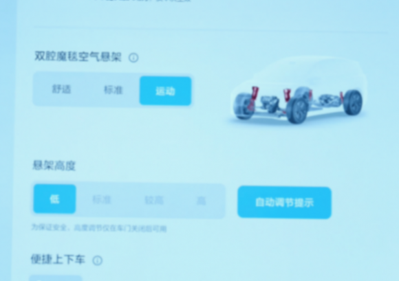 在實際駕駛過程中,理想i8同樣把動力、懸掛高度、魔毯懸掛、動能回收、轉向等等這些都解耦了,從而有了更豐富的組合。但是和早期試駕MEGA不同,那時候MEGA把空懸、CDC的軟硬都做了解耦,比如有運動魔毯和舒適魔毯,而現在就統一成舒適、標準、運動三擋。