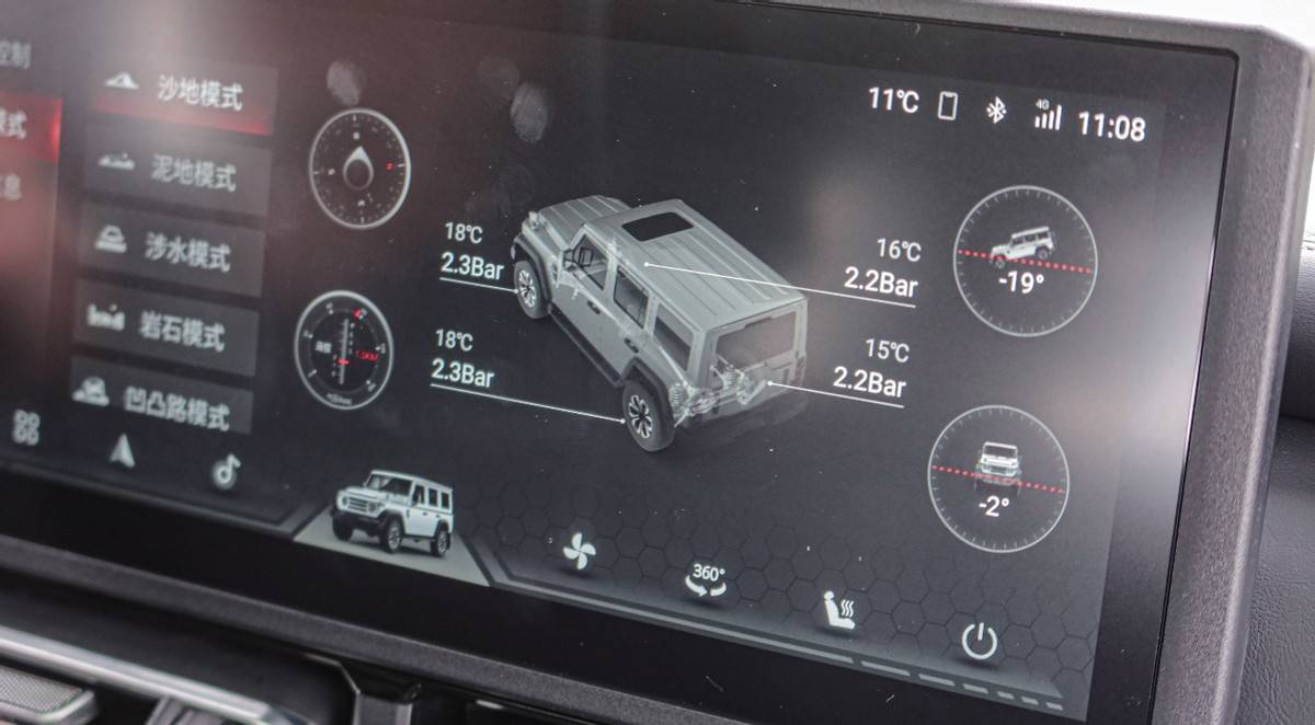 這種“低轉(zhuǎn)高扭”的特性,讓攀爬長陡坡變得“信手拈來”,沒有令人尷尬的“撓胎”和遲疑。而且360°全景影像也能在這種狹窄復雜的地形下給你提供更多觀察視角,同時你還可以在高度集成的12.3 英寸多媒體中控屏上觀察車輛實時越野狀態(tài)、胎壓等實用信息。