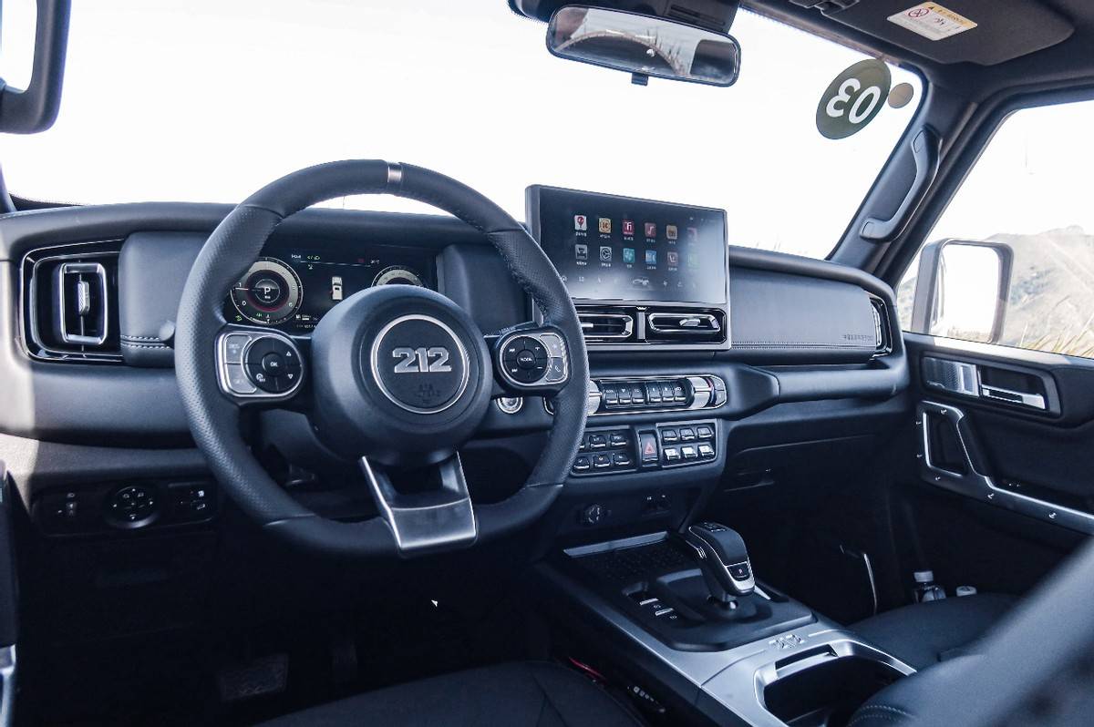 對于硬派越野車而言,全地形通過性是其核心競爭力之一。212 T01 柴油版在這方面的表現(xiàn)可圈可點,無論是參數(shù)還是實戰(zhàn)能力,都能滿足越野愛好者的嚴苛需求。從官方給出的數(shù)據(jù)來看,212 T01 柴油版擁有 40° 的接近角、36° 的離去角、235mm 的離地間隙以及 850mm 的涉水深度,搭配265/70 R17 HT 輪胎,這些數(shù)據(jù)在硬派越野領(lǐng)域都拿得出手。