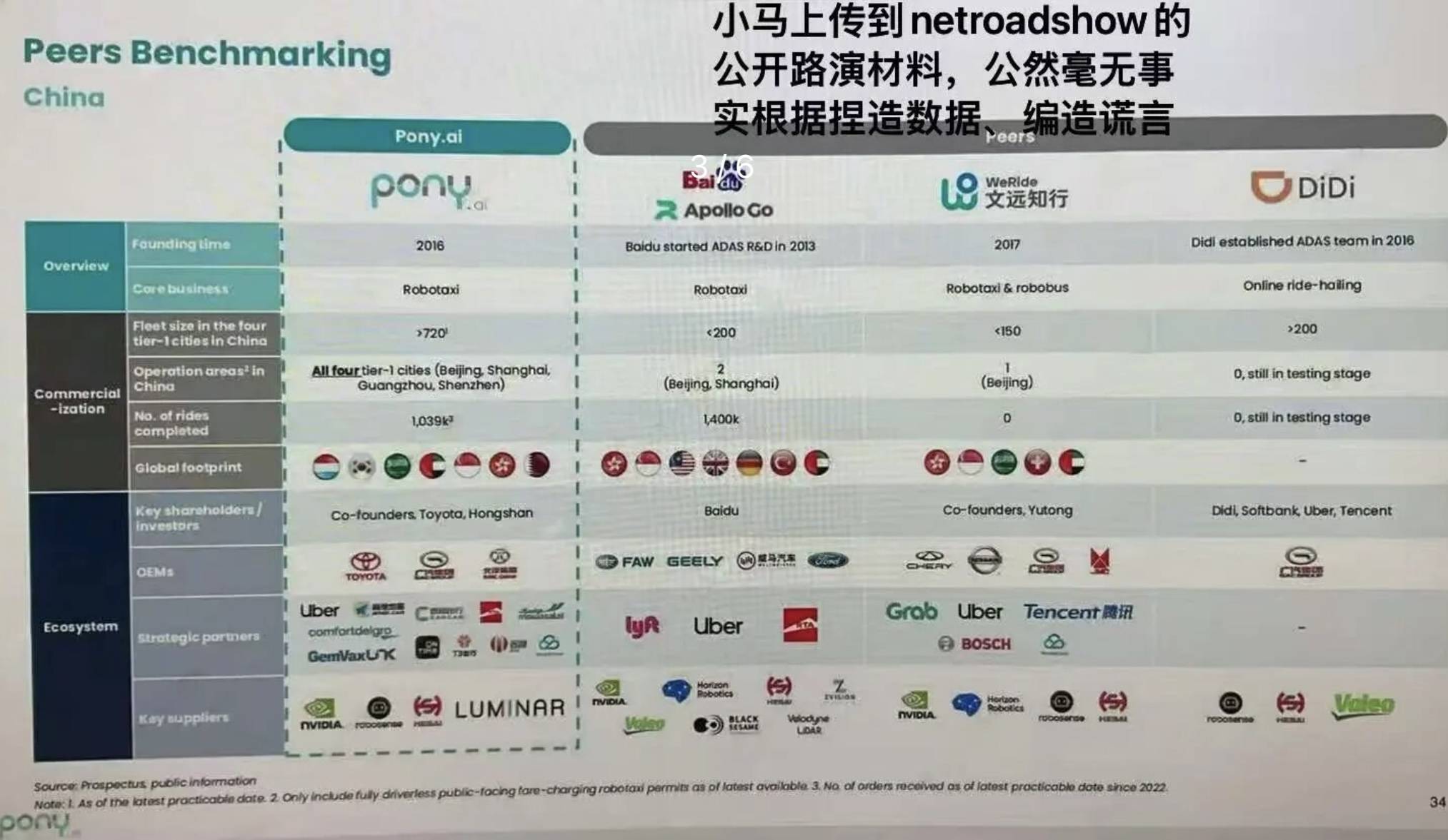截止目前,小馬智行未對文遠知行的指控做出回應,但二者的“老東家”百度又下場加入了戰局,同樣直指小馬智行的路演材料的問題。