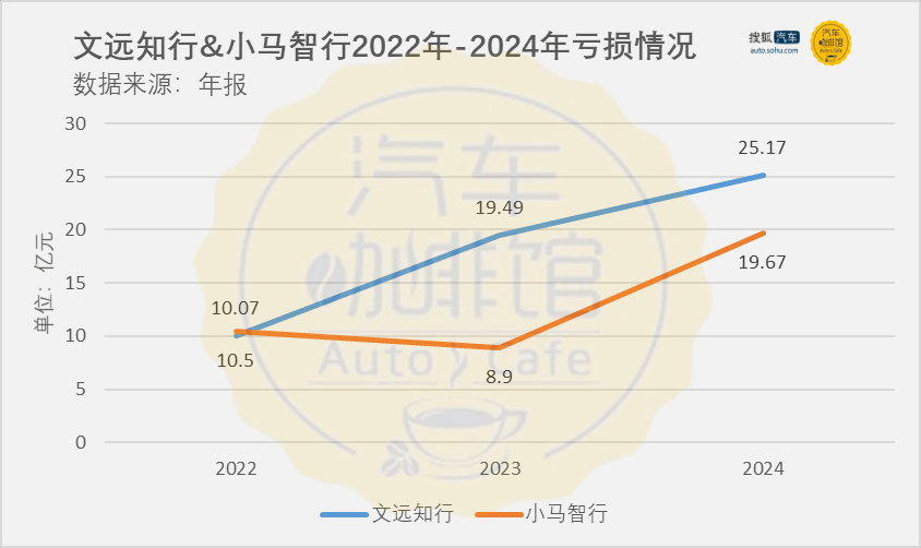 文遠知行&小馬智行2022年-2024年虧損情況 圖源:搜狐汽車