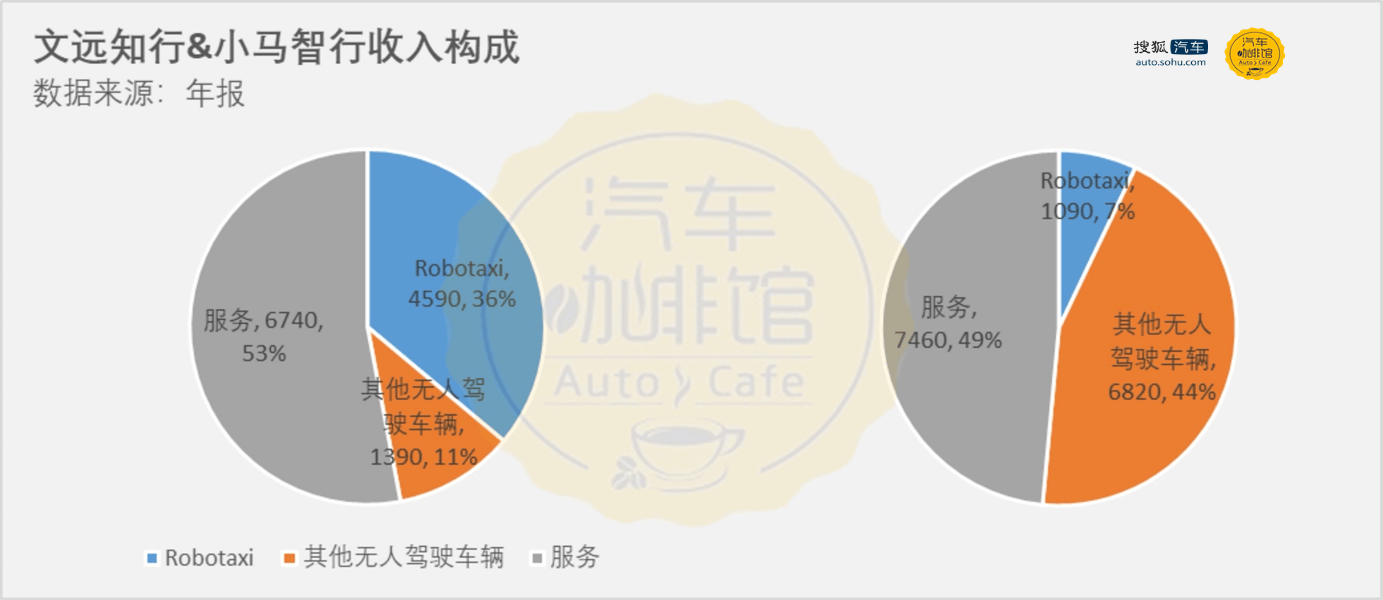文遠知行&小馬智行收入構成 其中左為文遠知行 右為小馬智行 圖源:搜狐汽車