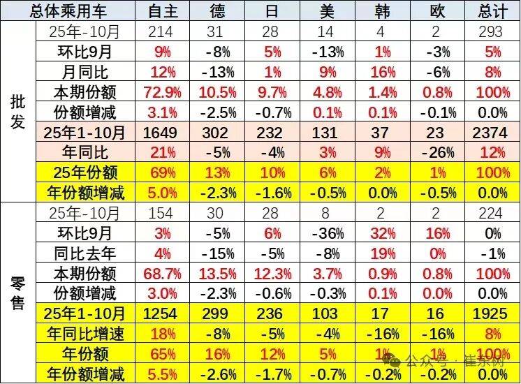 2025年前10月,中國汽車累計批發銷量為2,768.7萬輛,同比增長12.40%;新能源車銷量1,294.3萬輛,滲透率46.75%。其中,10月新能源車銷量171.5萬輛,滲透率51.6%,首次超過半數。