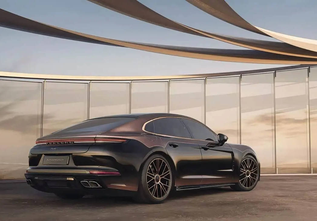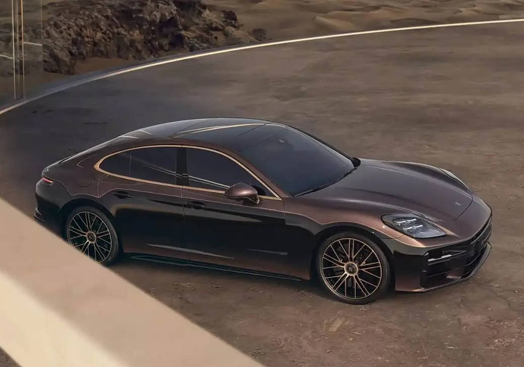 外觀方面,這款定制版Panamera Turbo采用雙色車身設(shè)計(jì),上半部為日落紅,下半部為布朗紫,均為金屬漆。同時(shí)漆面內(nèi)部還添加了金粉作為裝飾,讓這輛車在陽(yáng)光下熠熠生輝。細(xì)節(jié)上,車身四周還采用金屬色裝飾條,選裝的21英寸輪圈同樣也采用了金屬色。