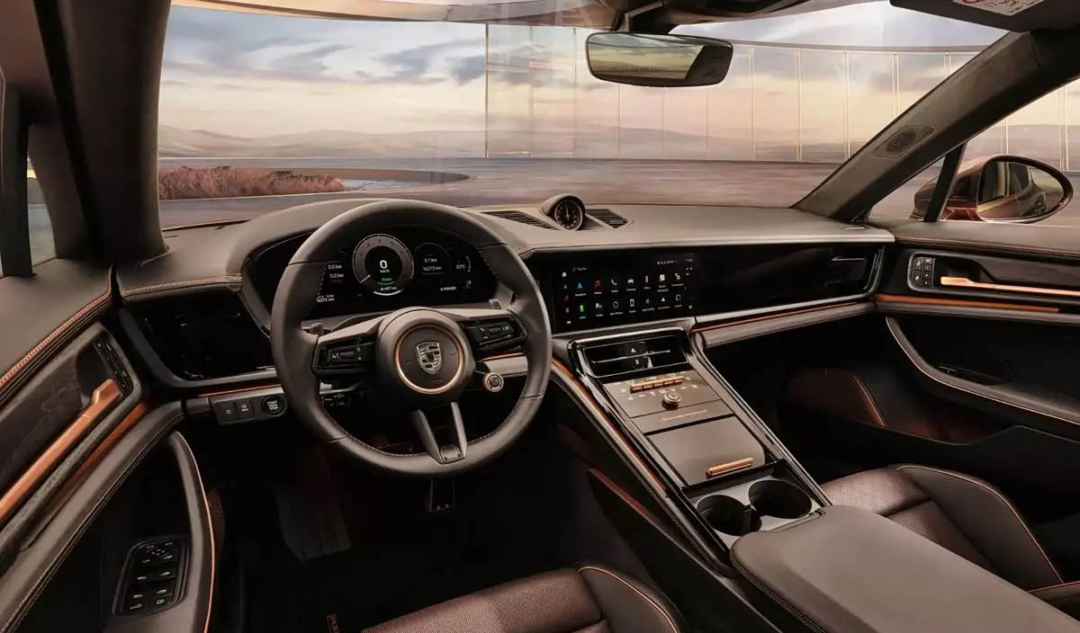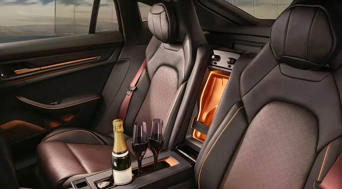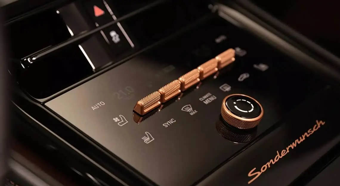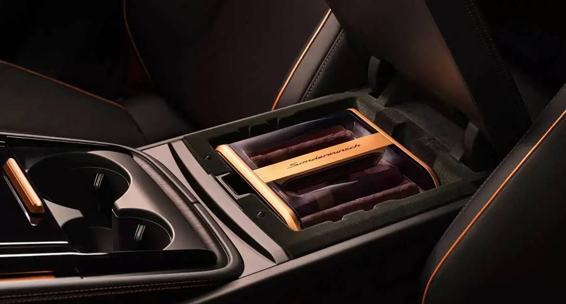 該車內(nèi)飾采用全手工打造,大面積采用黑色皮革以及金屬裝飾,同時(shí)中控臺(tái)上方還有“Sonderwunsch”字樣,表明定制的身份。細(xì)節(jié)上,該車安全帶、縫線采用日落紅和巴瑞克紅的配色。另外在配置上,保時(shí)捷還根據(jù)車主要求在儲(chǔ)物格內(nèi)安裝了雪茄保濕盒,雪松木為內(nèi)襯,還配有濕度計(jì),以及帶照明的香檳柜。