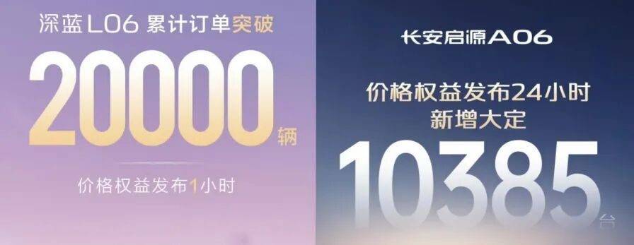 近日,深藍L06正式上市,限時驚喜價為13.29~15.49萬元。新車一經上市便引爆市場,僅1小時就斬獲了20000+的訂單,成為當之無愧的爆款車型。而就在前幾天,同屬長安汽車集團的長安啟源A06也正式上市,官方指導價為10.99~14.99萬元,上市初定大定訂單也迅速破萬,熱度居高不下。