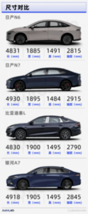 尺寸上,N6可以看作N7的標軸版,車長和軸距各砍10厘米,但4.83米仍然算中級車,和比亞迪秦L非常接近。